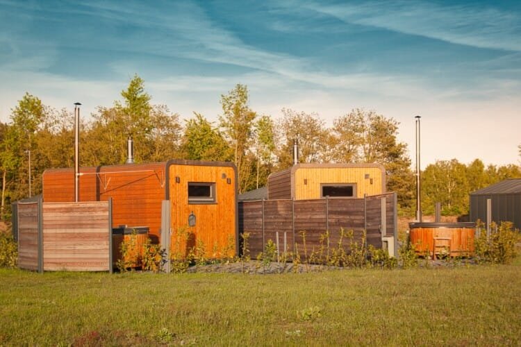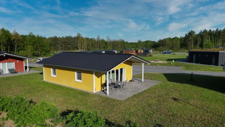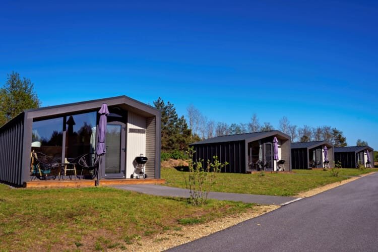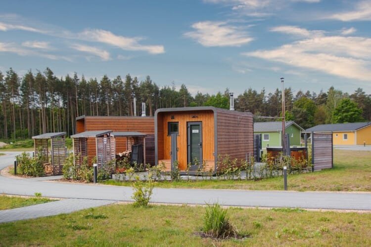 Die Terrasse lädt dich ein, die Sonne zu genießen und den Grill anzuwerfen. Für Entspannung und Wellness stehen holzbefeuerte Saunen sowie Badefässer mit Whirlpoolfunktion auf der Ferienanlage zur Verfügung. Zu dieser gehören insgesamt 14 Ferienhäuser. Die unmittelbare Nähe zum Sandstrand ermöglicht dir tollen Badespaß. Darüber hinaus bietet dir der Bärwalder See jede Menge Möglichkeiten auf und am Wasser.