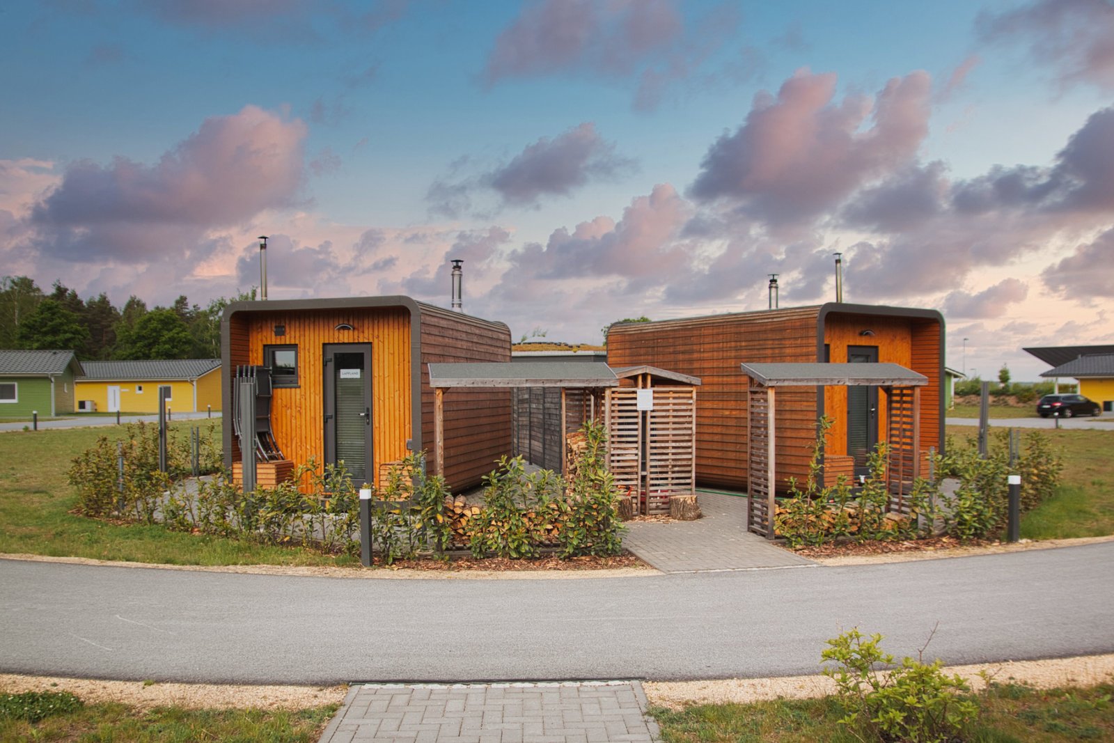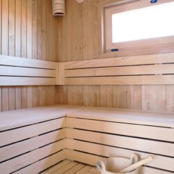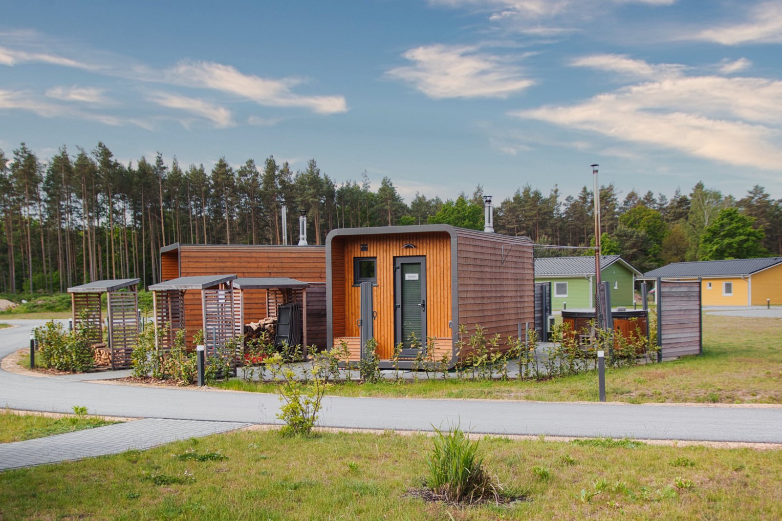 Die Terrasse lädt dich ein, die Sonne zu genießen und den Grill anzuwerfen. Für Entspannung und Wellness stehen holzbefeuerte Saunen sowie Badefässer mit Whirlpoolfunktion auf der Ferienanlage zur Verfügung. Zu dieser gehören insgesamt 24 Ferienhäuser sowie vier Suiten.